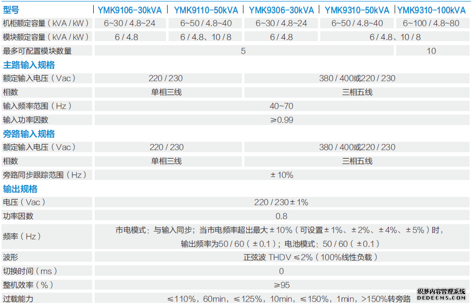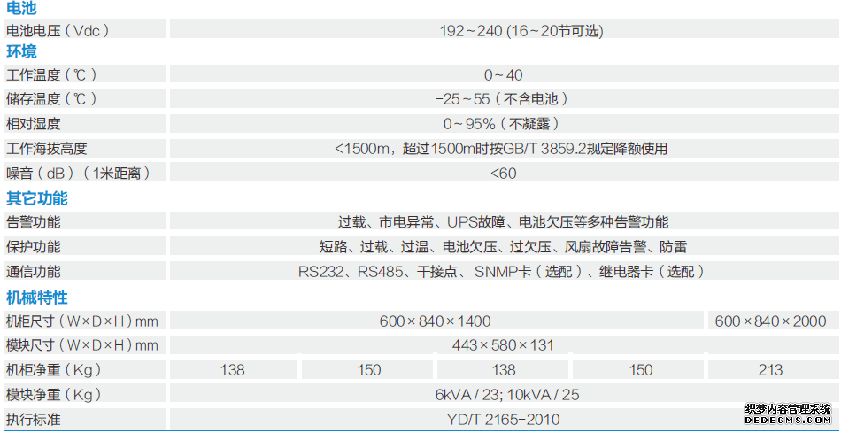 單模塊容量6kVA/10kVA,所有模塊高度均為3U。1.4米高的機(jī)柜最多可以安裝5個(gè)模塊2米高的機(jī)柜最多可以安裝10個(gè)模塊。6~100kVA系統(tǒng)由1~10個(gè)模塊并聯(lián)組成。模塊與機(jī)柜間采用熱插拔技術(shù)