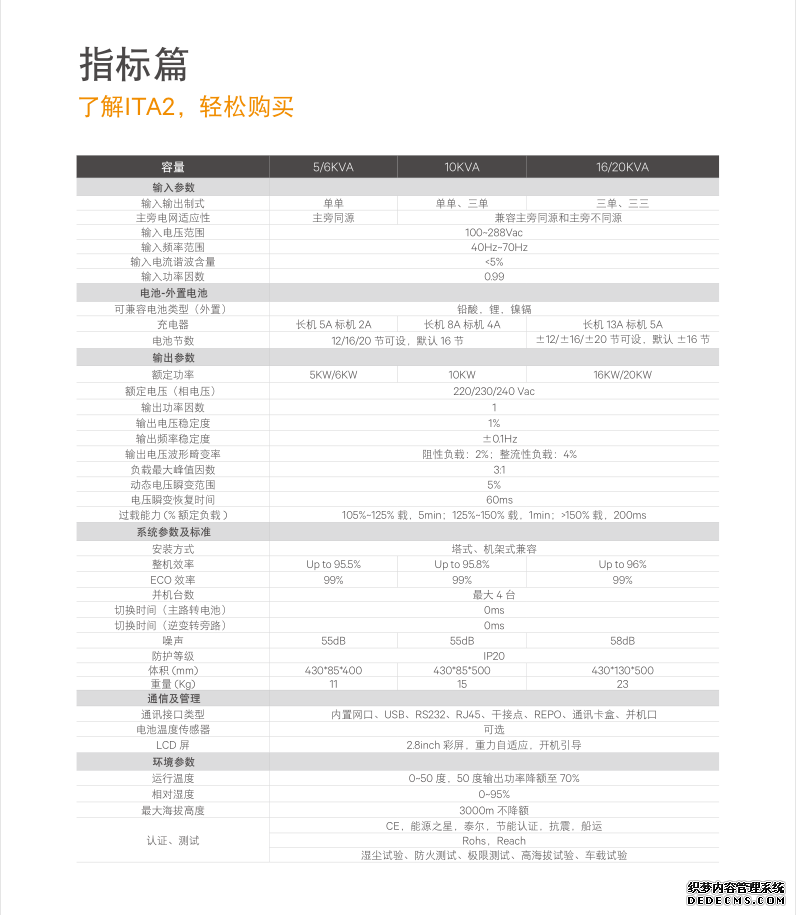 維諦(原艾默生網(wǎng)絡(luò)能源)ITA2系列5KVA-20KVA產(chǎn)品參數(shù)表: