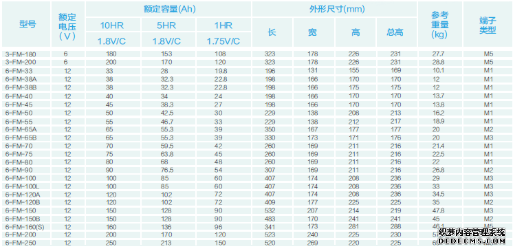 在20℃環(huán)境下,F(xiàn)M系列小型密封電池浮充壽命可達(dá)3~5年,F(xiàn)M固定型密封電池浮充壽命可達(dá)8~10年,F(xiàn)ML系列電池浮充壽命可達(dá)10年,F(xiàn)MH系列電池浮充壽命可達(dá)10年,GFM系列、太陽能深循環(huán)系列電池浮充壽命可達(dá)15年,GFMJ系列電池浮充壽命可達(dá)18年。